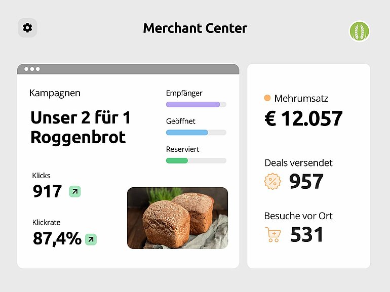 Du hast in deiner Bäckerei ein besonderes Angebot am Wochenende? Mit unseren Kampagnen kannst du deine Kunden mit nur wenig Aufwand per App oder E-Mail erreichen!