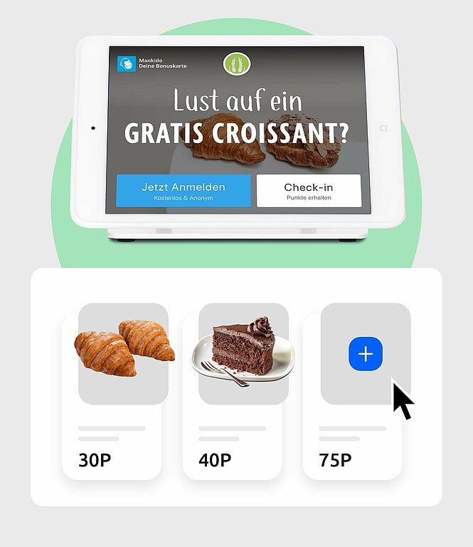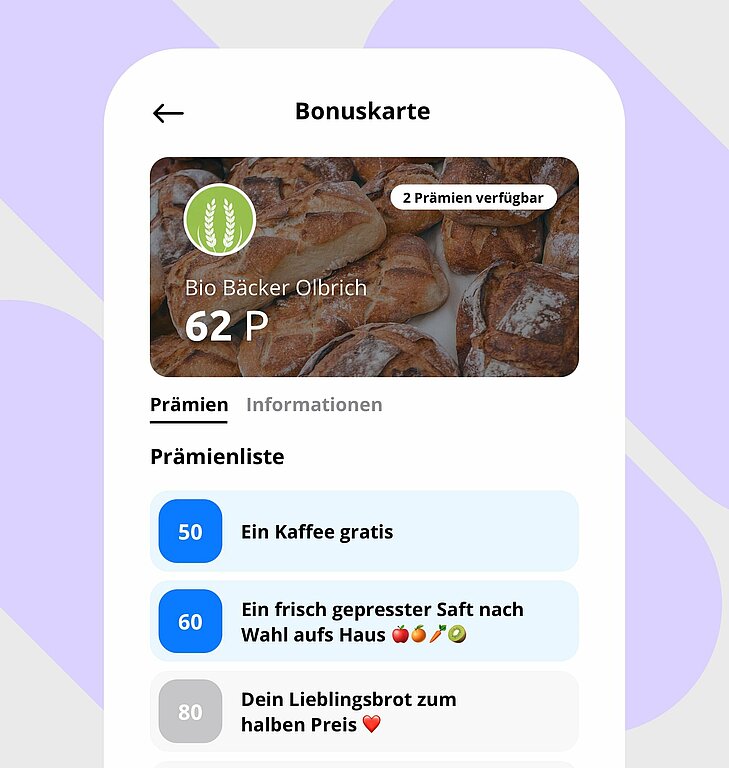 Belohne deine Kunden bei jedem Einkauf in deiner Bäckerei mit digitalen Treuepunkten, die sie gegen tolle Prämien eintauschen können. Die unterschiedlich wertvollen Prämien, erhöhen den Anreiz öfter Punkte zu sammeln und mehr auszugeben.