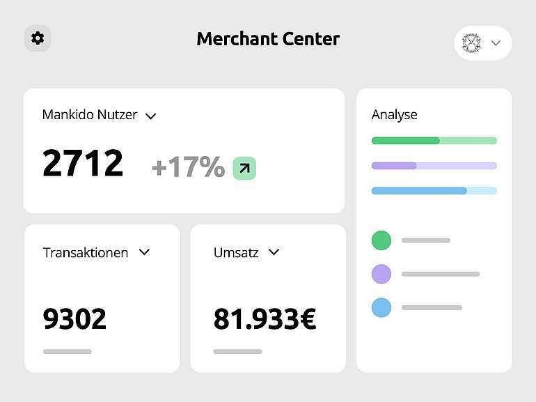 Dein persönliches Merchant Center zeigt dir die Erfolge, die du mit Mankido erreichst. Erhalte Einblicke über die Wirkung deiner Kampagnen oder deine Kundengruppen und gestalte deine Prämien und dein Terminal individuell.